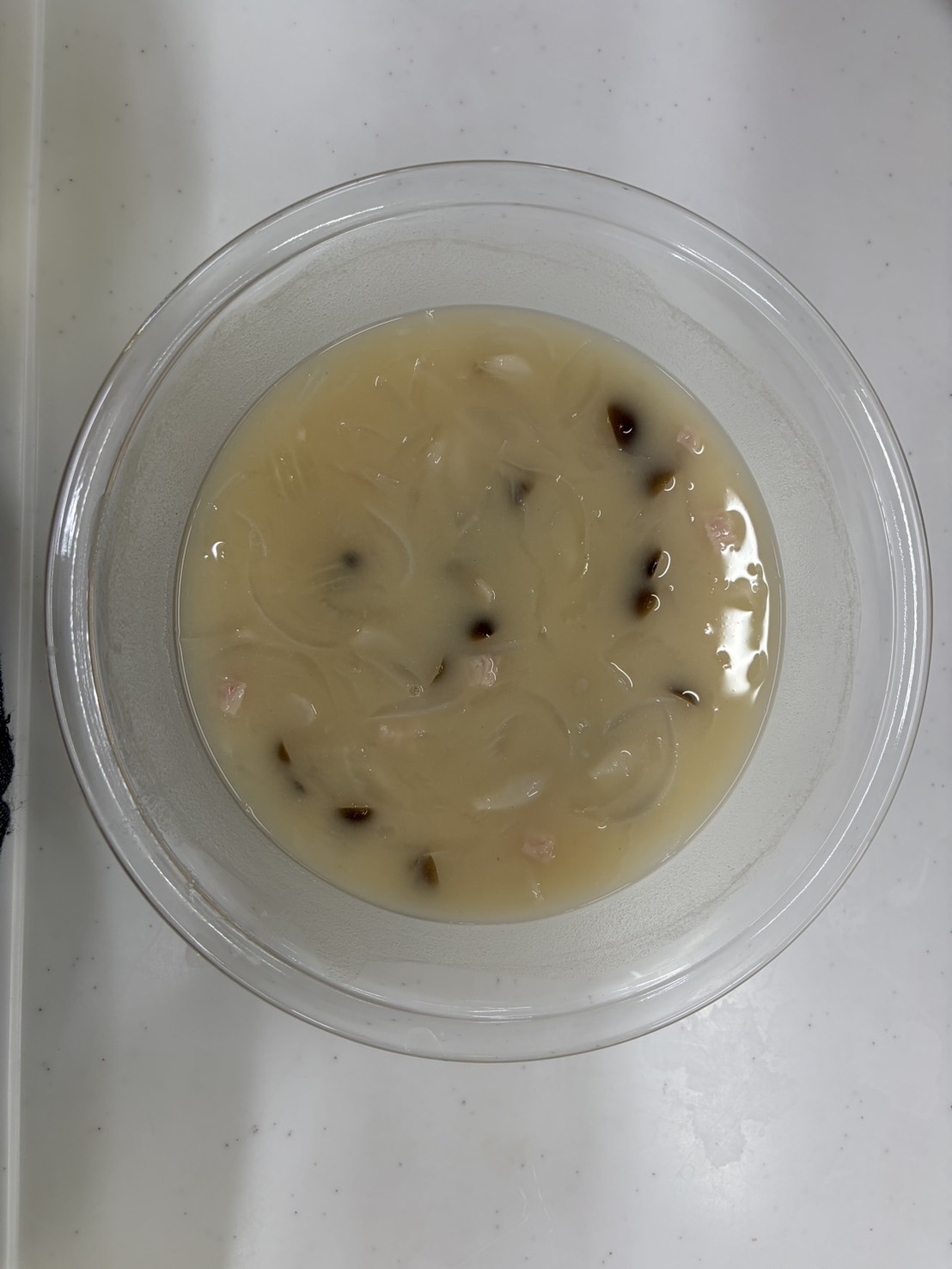 耐熱ガラスボウルに切った材料と水とルウを入れます。